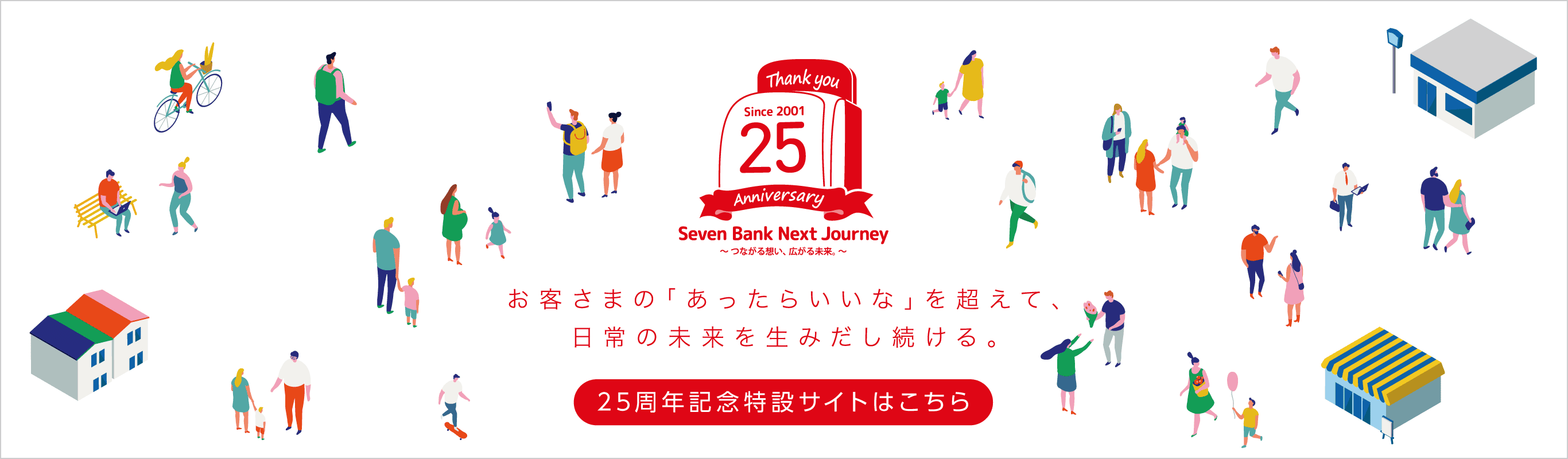 時代とともに、人々の生活様式も金融に対するニーズも変わっていきます。セブン銀行グループはこうした変化を好機と捉え、金融の枠を超えた幅広いニーズに対応できる社会インフラの提供を目指し、様々な事業・サービスを通じて、新たな価値創造にまい進し続けます。