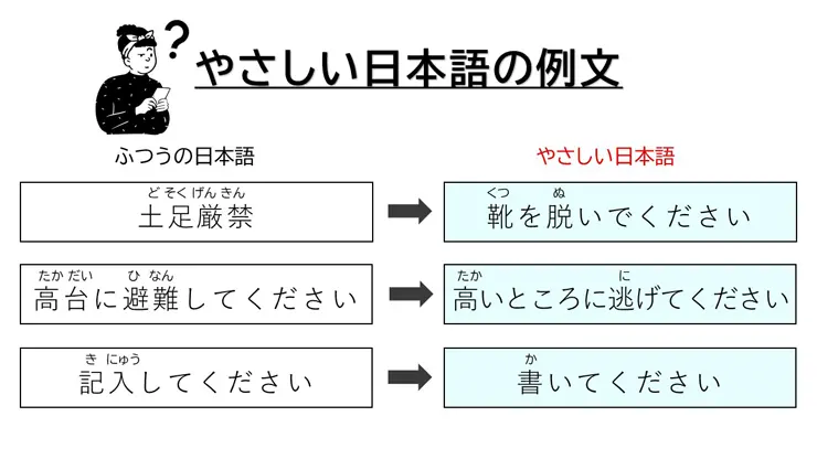 以前から、日本に住む外国人に伝わりやすいのはやさしい日本語だということがわかっており、日常的なことは、やさしい日本語で十分に伝えられます。