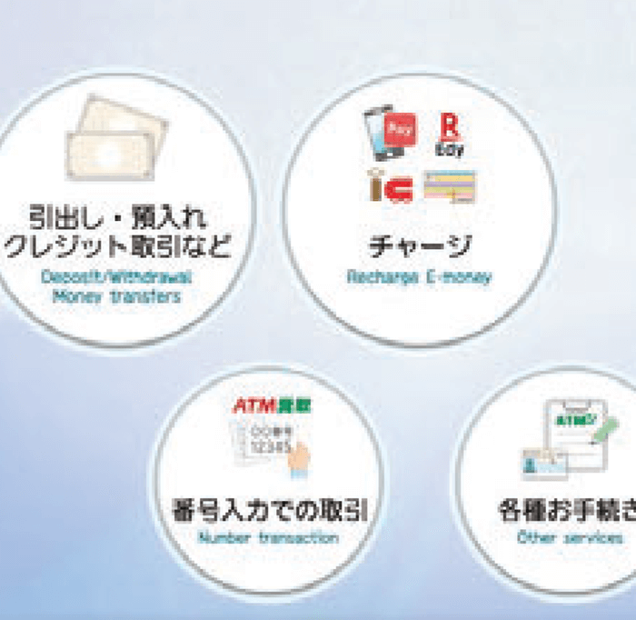 キャッシュレス決済の現金チャージや、外国人観光客が日本円を引き出せる海外発行カード取引、金融機関等の窓口業務を行うことができるサービスなど、従来のATMの概念を覆すような多様なサービスを開発・提供しています。