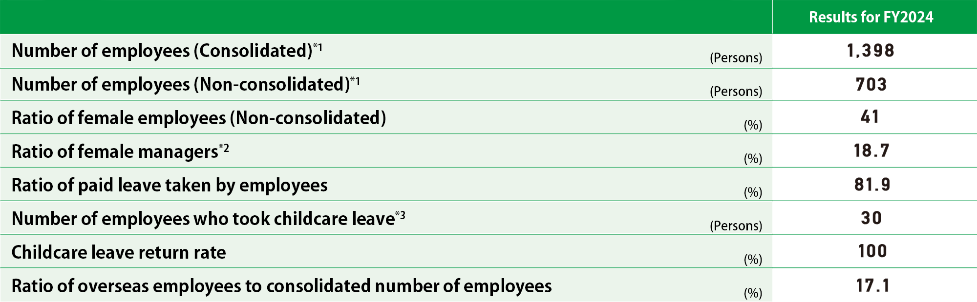 To bring about a new corporate transformation in the times of rapid change, we need human resources who are not bound by conventional ideas and practices but are able to identify issues not yet visualized and use their own creativity and technology to transform themselves, the company, and society. “Independent human resources” are the basic type of human resources we seek, and on top of that, the ideal human resources we seek are to have the ability to lead growth and the ability to accelerate corporate transformation. We have introduced various measures to help every employee develop a mindset geared to innovation.