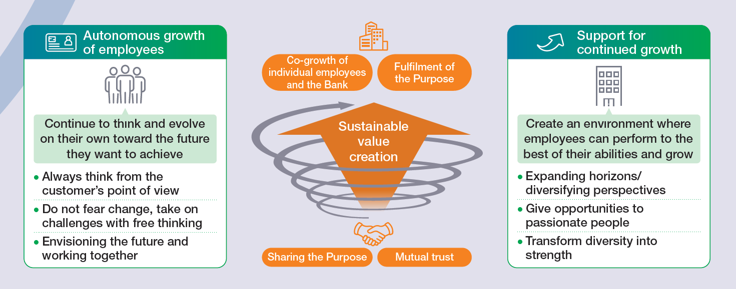 Inagaki: Each employee envisions their ideal self, then learns and works to continuously transform themselves. This will enable us to continue growing together with our employees toward the realization of the “future of everyday life” set forth in our Purpose. This is the fundamental concept underpinning our human resources strategy. By realizing co-growth between our employees and the company, we aim to achieve sustainable growth and enhance corporate value.