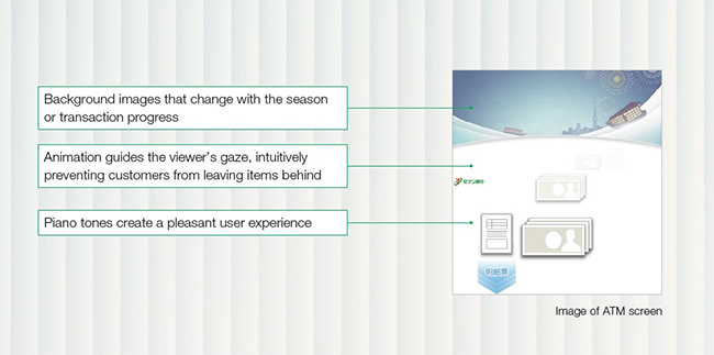 Mizumura: As ATMs are the most familiar presence for our customers, we are thoroughly committed to the user experience (UX). We pursued ease of use with a large dual-screen display, employed animation and sound to guide customers intuitively, and created seasonal screen displays, which elicited reactions on social media such as “Santa Claus has appeared!” We have tested in detail to determine how customers feel about minor details such as the feel of the keys and the sound they make when pressed and have implemented improvements based on our findings.