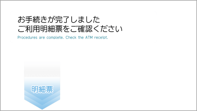 When the procedure is completed, the ATM will issue a statement. Please check it.