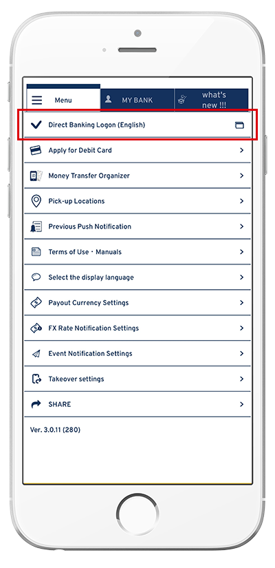 After that, configure the settings to use the app, and then register for the Direct Banking Service.