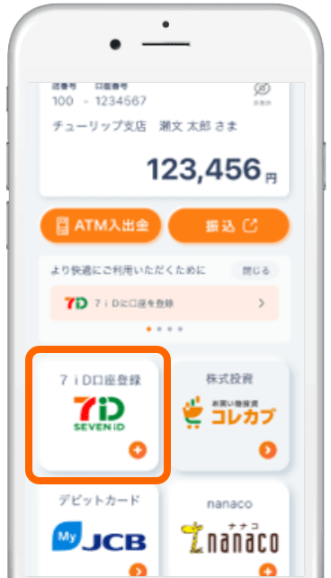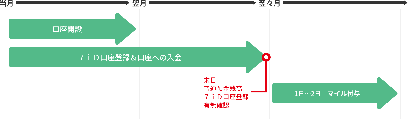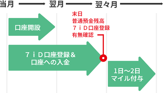 | 条件 | 7iD口座登録をしていること | 口座開設の翌月末時点で7iD口座登録をしていること 口座開設の翌月末時点で普通預金残高が1円以上あること |