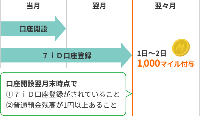 - ※口座開設による特典(マイルを含む)を過去に獲得している方、セブン銀行口座をすでにお持ちの方は対象外です。