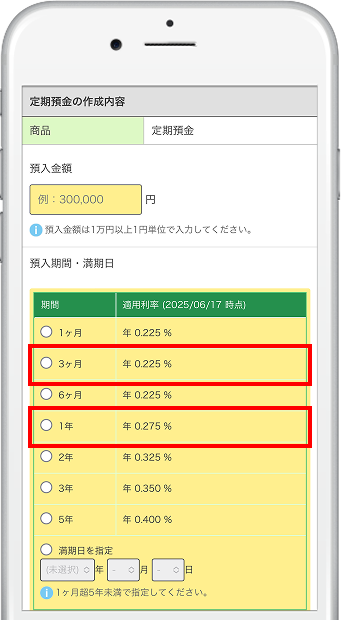 - ※満期日指定3ヶ月超6ヶ月未満も含む