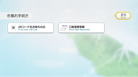「QRコードをお持ちの方」または「口座振替登録」ボタンを押してください。