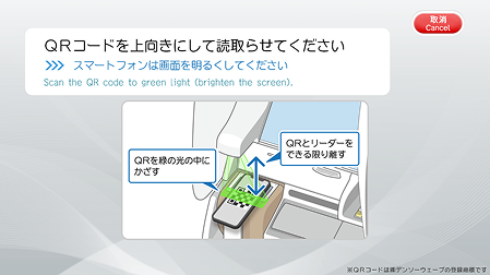 ATM左側の+ (plus) エリアにQRコードを上に向けてかざしてください。