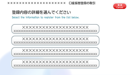 口座振替を登録する対象と登録内容の詳細を選択してください。