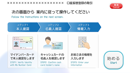 - ・お手続きにはご利用される金融機関のキャッシュカードと企業・団体が発行したQRコードが必要です。