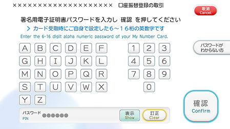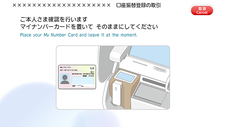 ATM左側の+ (plus) エリアにマイナンバーカードを置いてください。