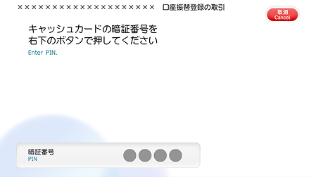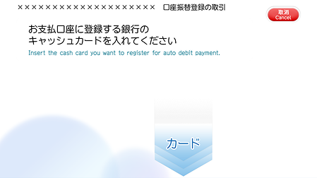 お支払口座に登録する銀行のキャッシュカードをいれてください。