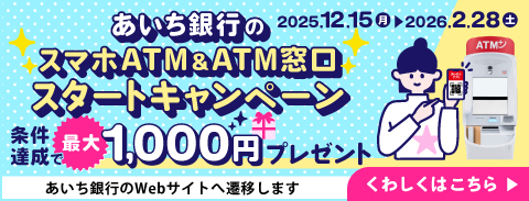 あいち銀行のスマホATM&ATM窓口スタートキャンペーン(あいち銀行のWebサイトに遷移します)