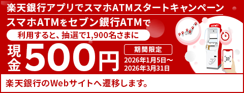 楽天銀行アプリでスマホATMスタートキャンペーン(楽天銀行のWebサイトに遷移します)