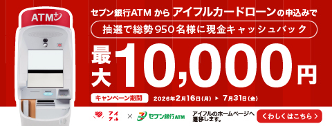 アイフルのカードローン申込みはセブン銀行ATMで!最大10,000円もらえるキャンペーン(アイフルのWebサイトに遷移します)