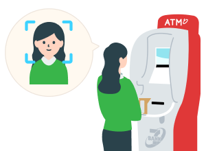 取引口座に顔情報を登録することで、キャッシュカード等を使わず入出金取引きができるサービスです。